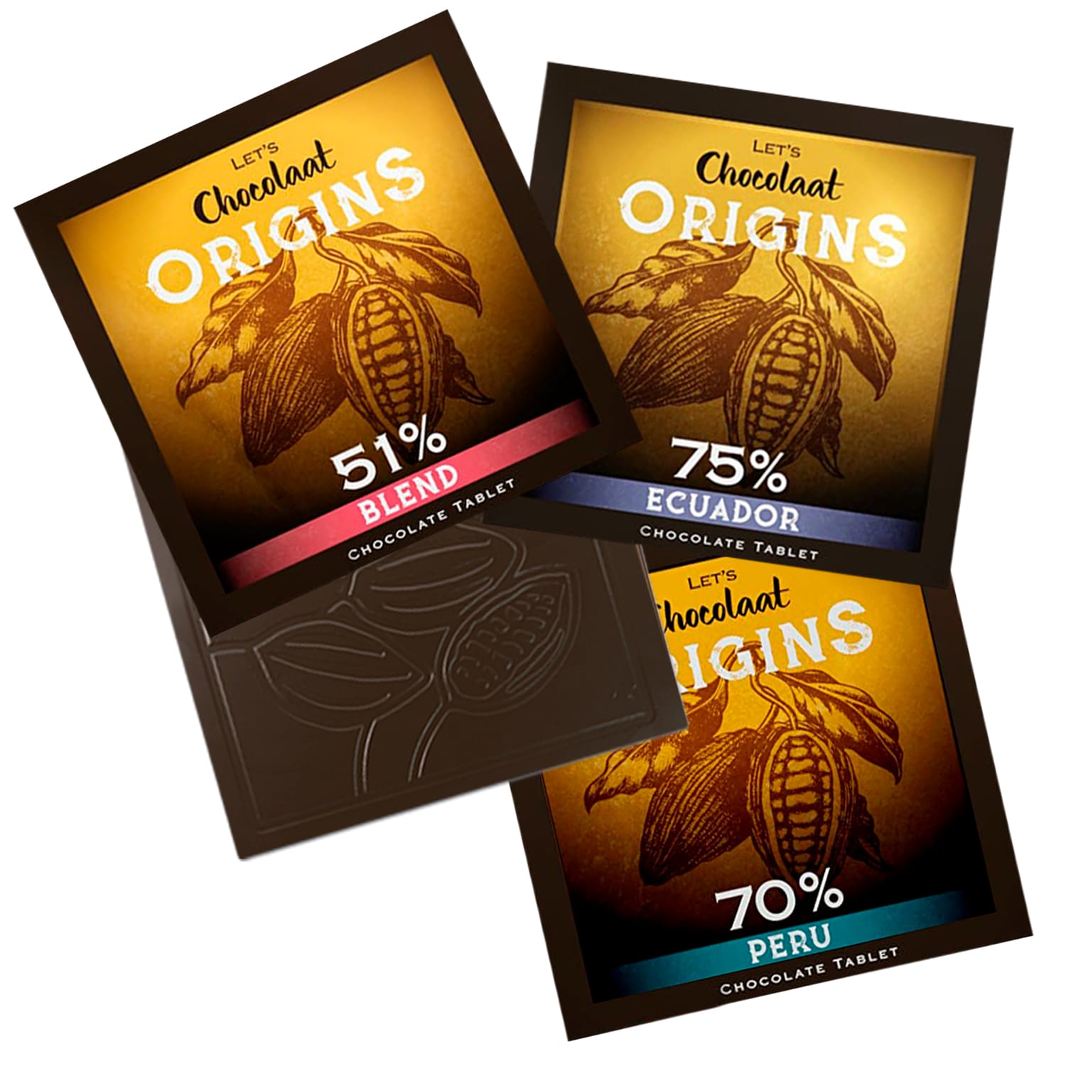 Caja con dos tabletas de 35g, perfectas para regalar, de chocolate negro de agradable sabor y con un toque de avellana.