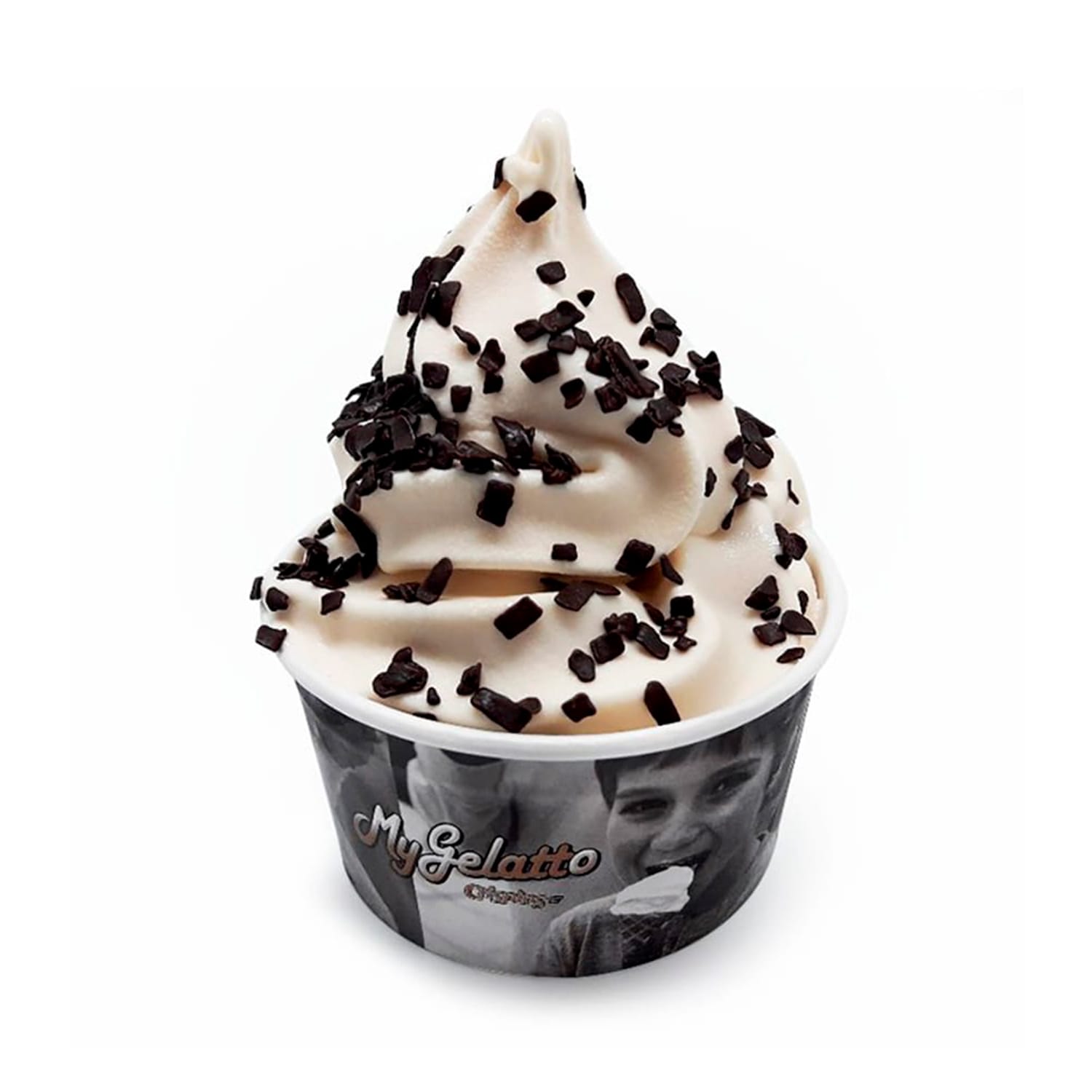 Bote dispensador de topping de fideos finos de chocolate. Potencia el sabor y la presentación del helado soft.